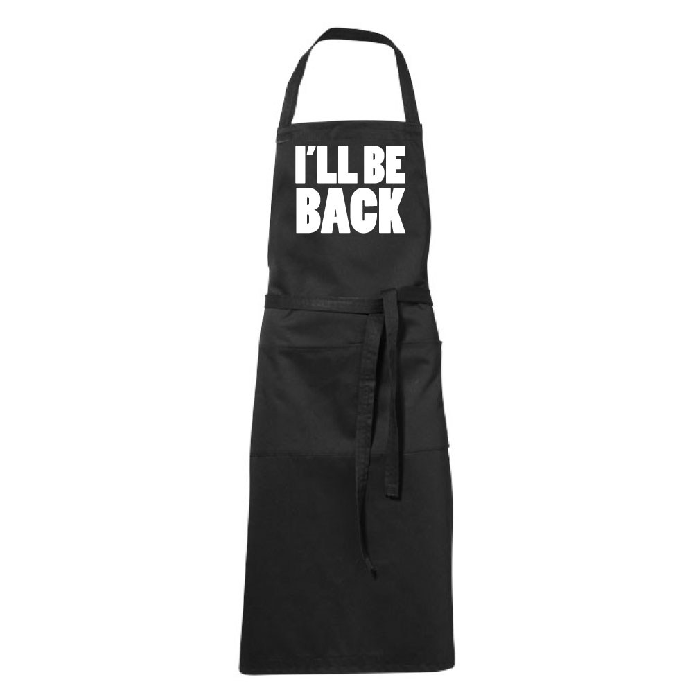 Tablier de cuisine humoristique noir "I'll be back"